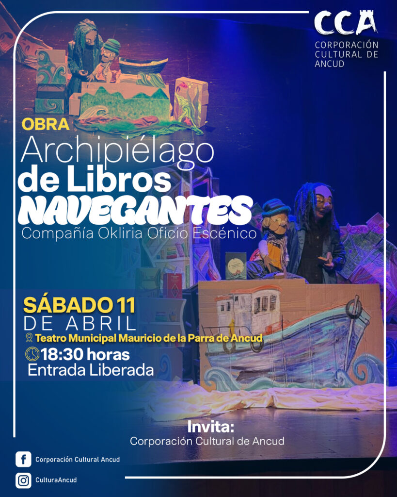 Este sábado 11 de abril a las 18:30 horas, el Teatro Municipal Mauricio de la Parra abrirá sus puertas para presentar la destacada obra de títeres “Archipiélago de Libros Navegantes”, de la Compañía Okliria Oficio Escénico. Una propuesta escénica que rescata la esencia de nuestro territorio chilote, poniendo en valor la memoria, las tradiciones y el profundo vínculo con la lectura.