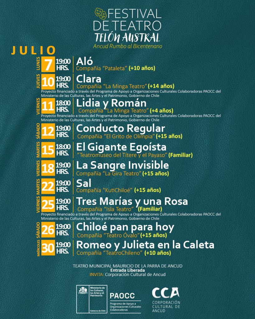 Las funciones se realizarán en el Teatro Municipal de Ancud durante el mes de julio